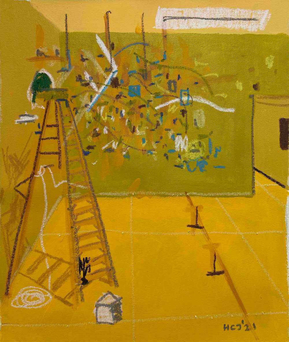Emulsions, Acrylics, Oil Sticks and Oil Pastels on Canvas